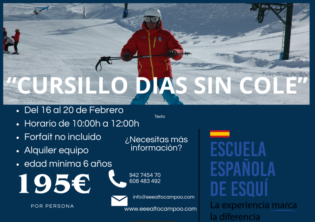 Suspendido el Cursillo días sin cole del 16 al 20 de Febrero por condiciones meteorológicas adversas.